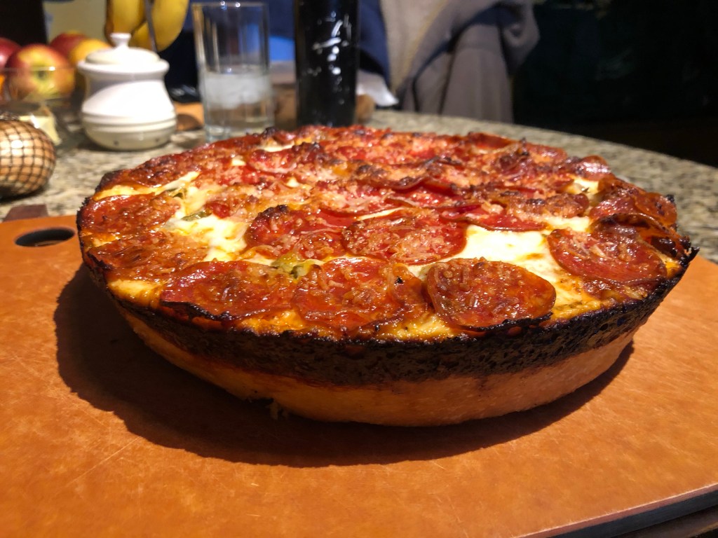 Pepperoni and Sausage (on half) pan pizzaOut of the pan Doesn’t that look yummy?